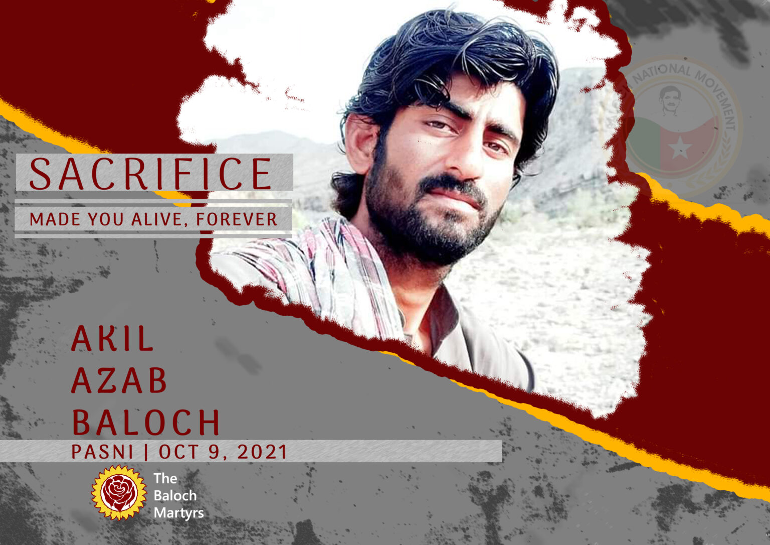 Akil Azad embraced martyrdom along with other his three comrades Asad Baloch, Pervez Mehr and Saki Baksh during a clash with Pakistanโs Army in Madag e Kaor, area of Kolwa, Kech, Balochistan on Oct 9, 2021.