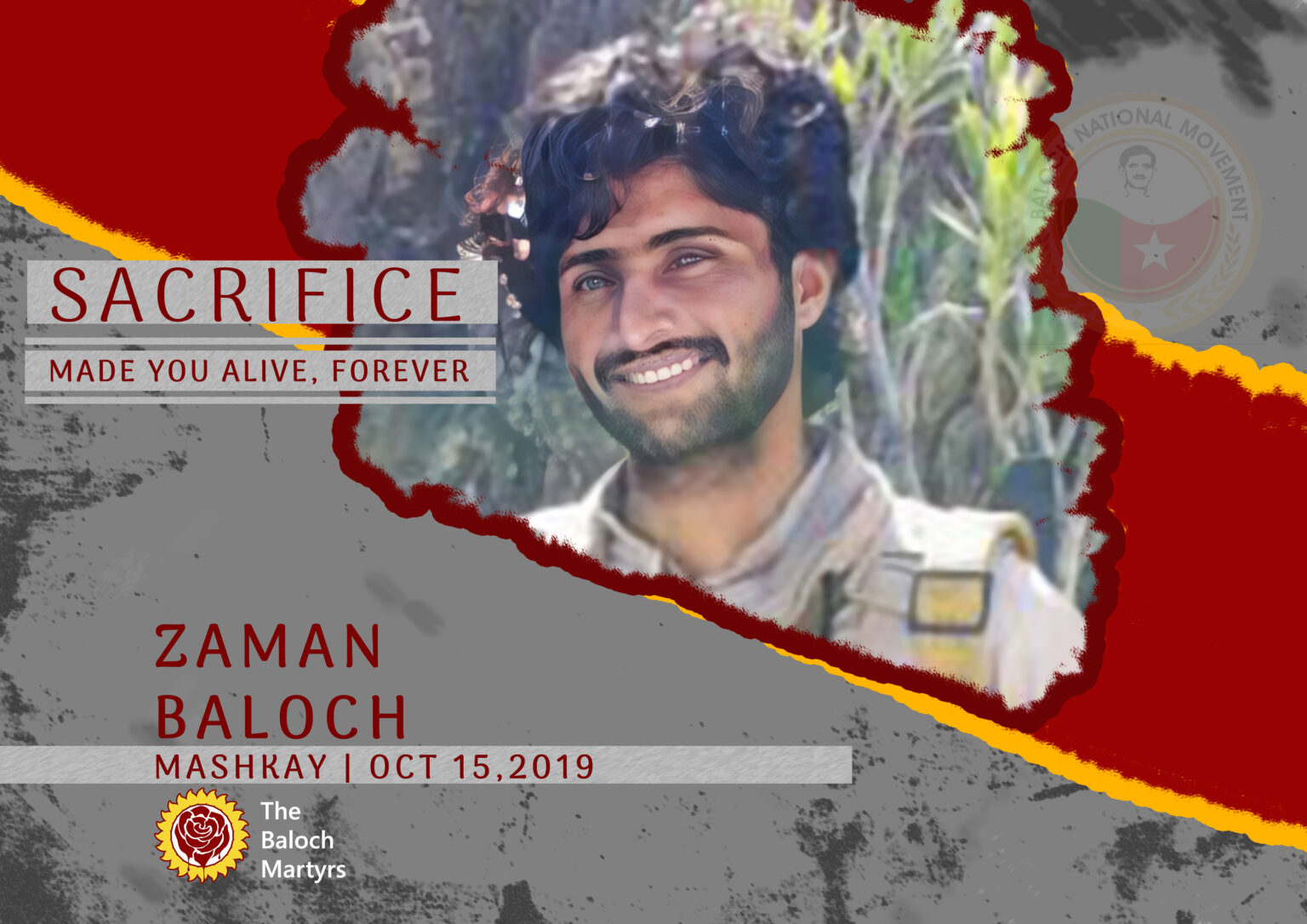 Martyr Zaman Baloch was a resident of Mashkay, Balochistan. He affiliated with an armed organization, Balochistan Liberation Front (BLF) for years. He embraced martyrdom during a clash with Pakistan Army on Oct 15, 2019.