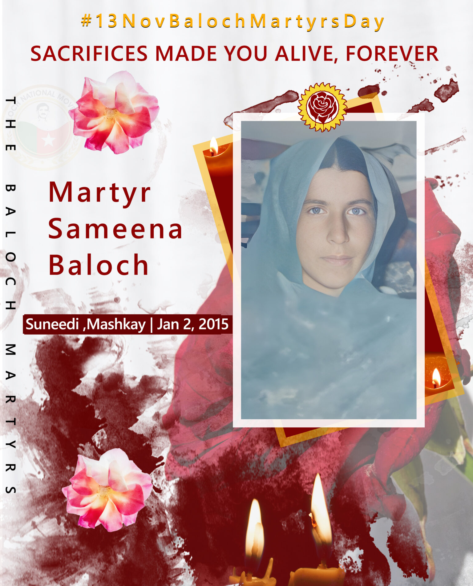 13 Nov Baloch Martyrs DayAwaranJanuaryMartyr Sameena Baloch Last updated: November 2, 2023 7:50 am BNM Share 0 Min Read Martyr Sameena Baloch | 2 Jan, 2015 SHARE Sacrifices Made You alive, foreverResident of Suneedi, Mashkay area of AwaranDate of martyrdom: Jan 2, 2015 Martyr Fidayee Yasir Noor Baloch Martyr Kamran Baloch Martyr Fidayee Muslim Baloch Martyr Fidayee Naveed Baloch Martyr Ustad Mukhtar Baloch TAGGED:#13NovBalochMartyrsDay#Awaran#Baloch#Balochistan#BalochMartyrs Share This Article Facebook Whatsapp Whatsapp Telegram Email Copy Link Print