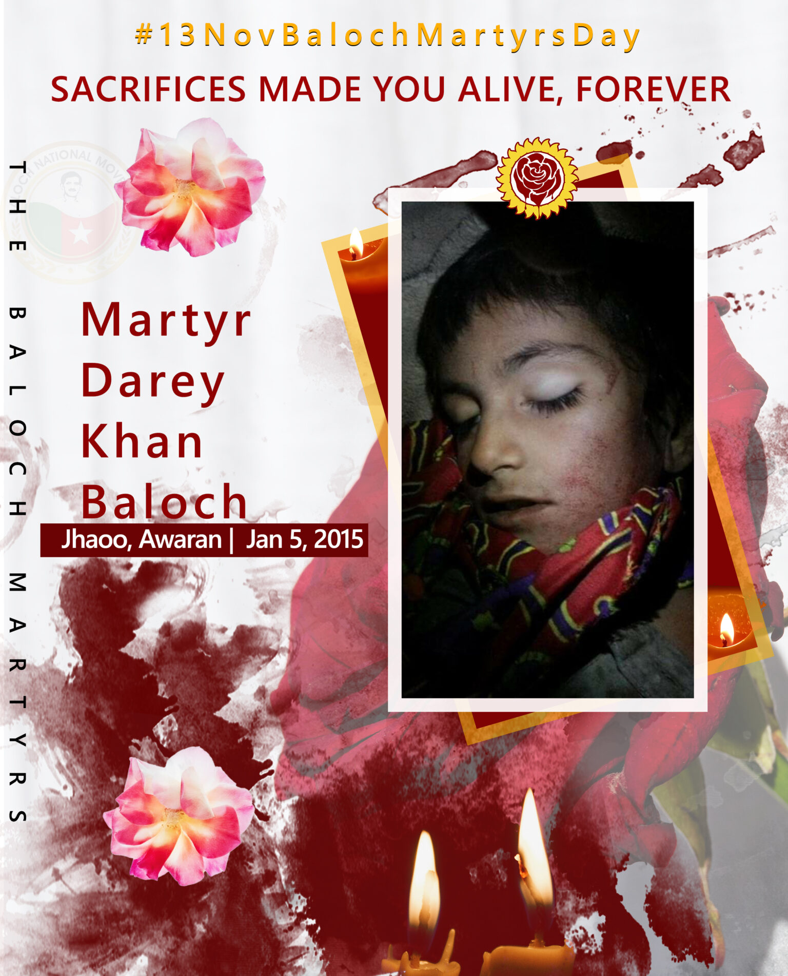 13 Nov Baloch Martyrs DayAwaranJanuaryPostersMartyr Darey Khan Last updated: November 2, 2023 2:55 pm BNM Share 0 Min Read Darey Khan Baloch | Jan 5, 2015 SHARE Sacrifices Made You Alive, ForeverResident of Jhaoo, AwaranDate of martyrdom: Jan 5, 2015 BalochMartyrs: Sacrifices made you alive, forever (Series 3) Martyr Haris Baloch Martyr Noora Baloch (Major Peerak) Martyr Ilyas Baloch Martyr Babu Nuroz Baloch TAGGED:#13NovBalochMartyrsDay#Awaran#Baloch#Balochistan#BalochMartyrs Share This Article Facebook Whatsapp Whatsapp Telegram Email Copy Link Print