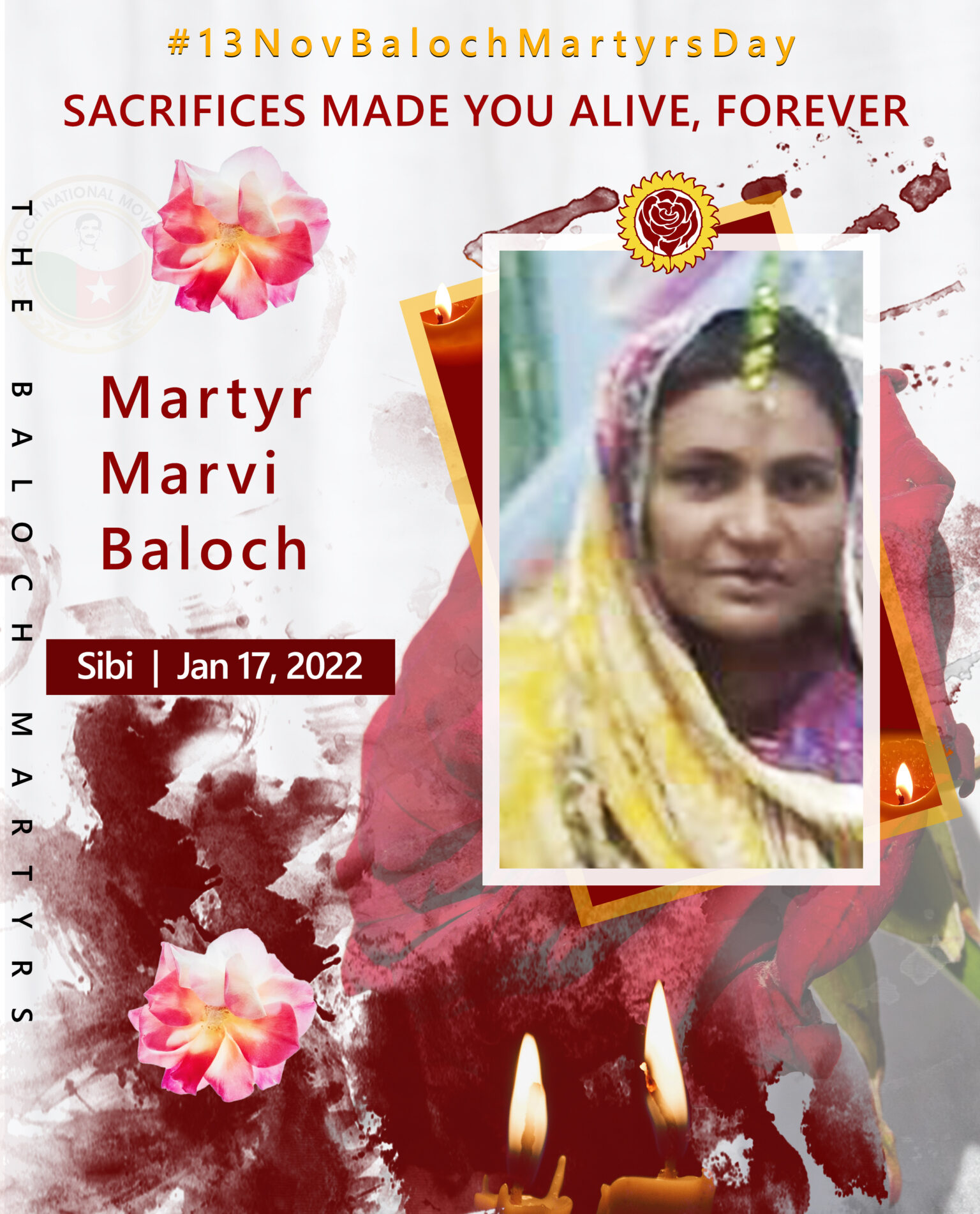 13 Nov Baloch Martyrs DayJanuaryPostersSibiMartyr Maravi Baloch Last updated: November 2, 2023 3:58 pm BNM Share 0 Min Read SHARE Sacrifices Made You Alive, ForeverResident of SibiDate of Martyrdom: Jan 17, 2022 Martyr Taj Muhammad Baloch Martyr Majid Baloch Martyr Nasir Baloch Martyr Haris Baloch Fida Ahmed Baloch Share This Article Facebook Whatsapp Whatsapp Telegram Email Copy Link Print Leave a Comment Leave a Comment Leave a ReplyYour email address will not be published. Required fields are marked *Comment *Name Email Website Δ