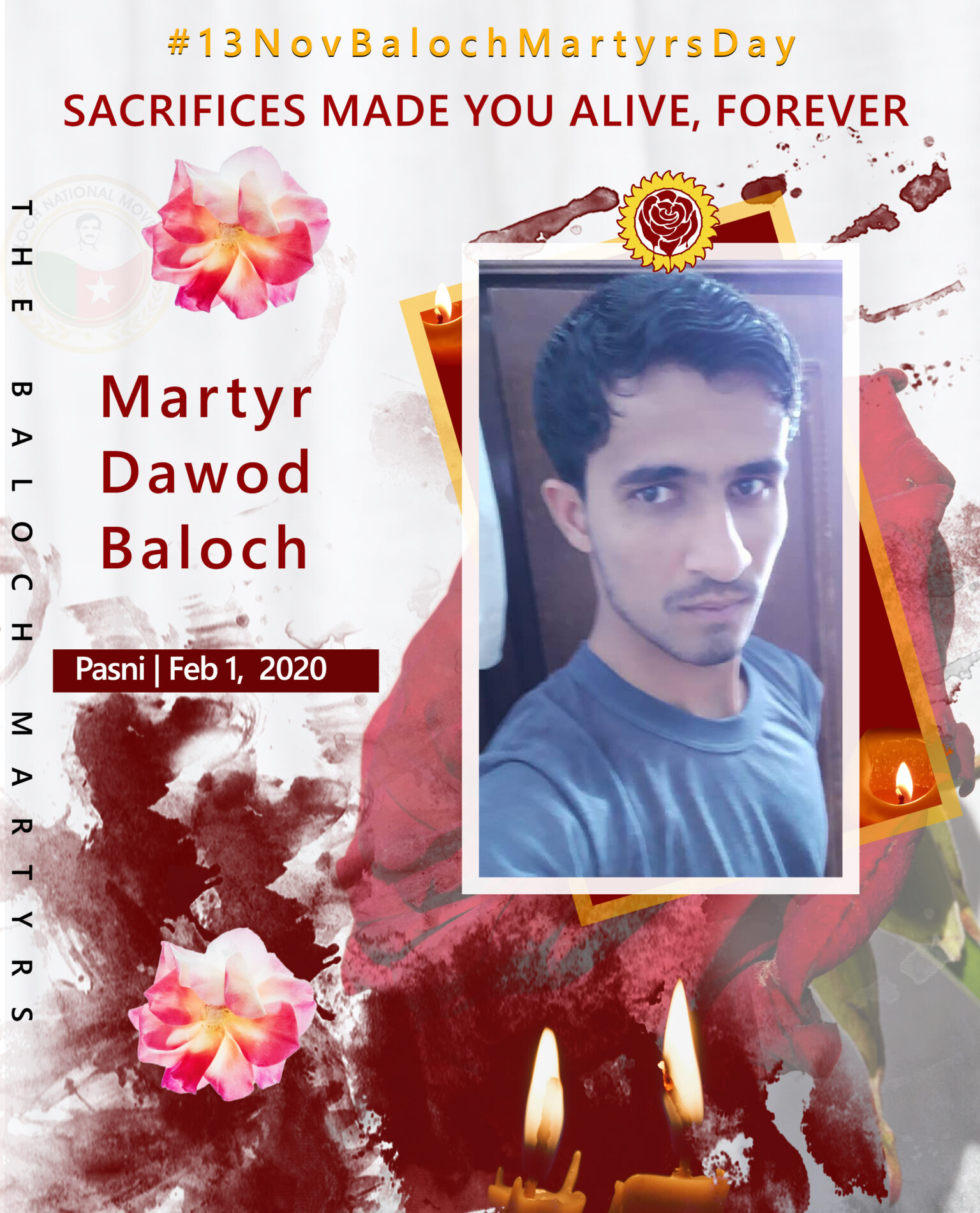 13 Nov Baloch Martyrs DayFebruaryGwaderPostersMartyr Dawod Baloch Last updated: November 4, 2023 12:50 pm BNM Share 0 Min Read SHARE Sacrifices Made You Alive, ForeverResident of Pasni, GwadarDate oof Martyrdom: Feb 1, 2020 Martyr Wahid Baksh BalochMartyrs: Sacrifices made you alive, forever (Series 5) Martyr Haroon Baloch Martyr Kachkol Bahar Martyr Khair Bakhsh Baloch TAGGED:#13NovBalochMartyrsDay#Baloch#Balochistan#BalochMartyrs Share This Article Facebook Whatsapp Whatsapp Telegram Email Copy Link Print