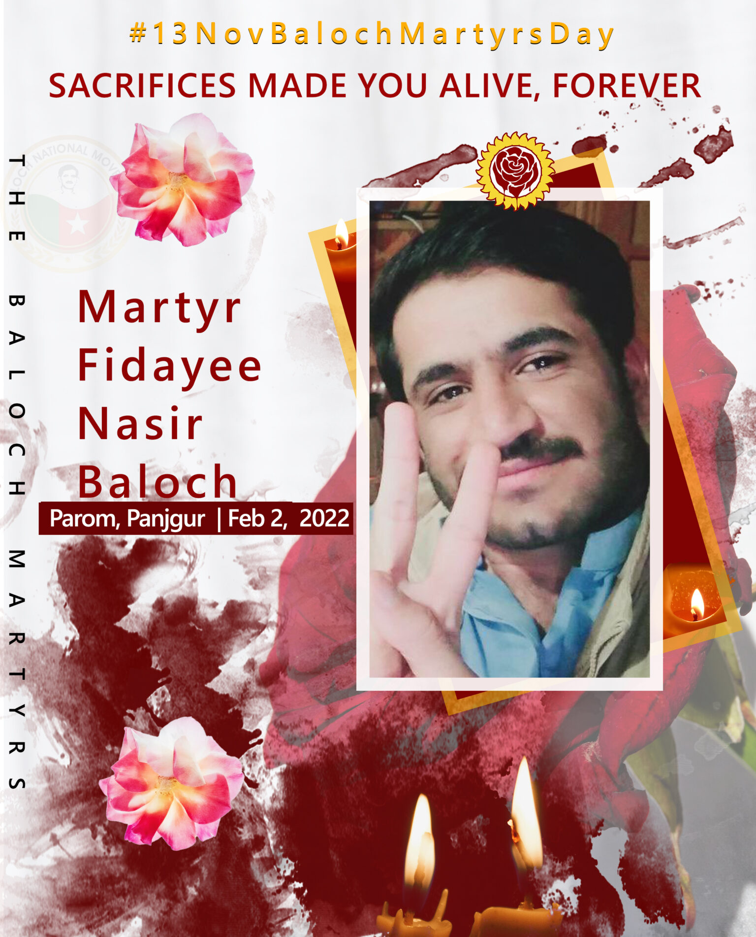 13 Nov Baloch Martyrs DayBLAFebruaryKechPanjgurPostersMartyr Fidayee Nasir Imam Baloch Last updated: November 6, 2023 8:23 am BNM Share 0 Min Read SHARE Sacrifices Made You Alive, ForeverResident of Parom, PanjgurDate of martyrdom: Feb 2, 2022 Martyr Hasil Baloch Martyr Abdullah Baloch Martyr Ishaq Baloch Martyr Nawaz Baloch Martyr Shahid Nadeem TAGGED:#13NovBalochMartyrsDay#Baloch#Balochistan#Panjgur Share This Article Facebook Whatsapp Whatsapp Telegram Email Copy Link Print