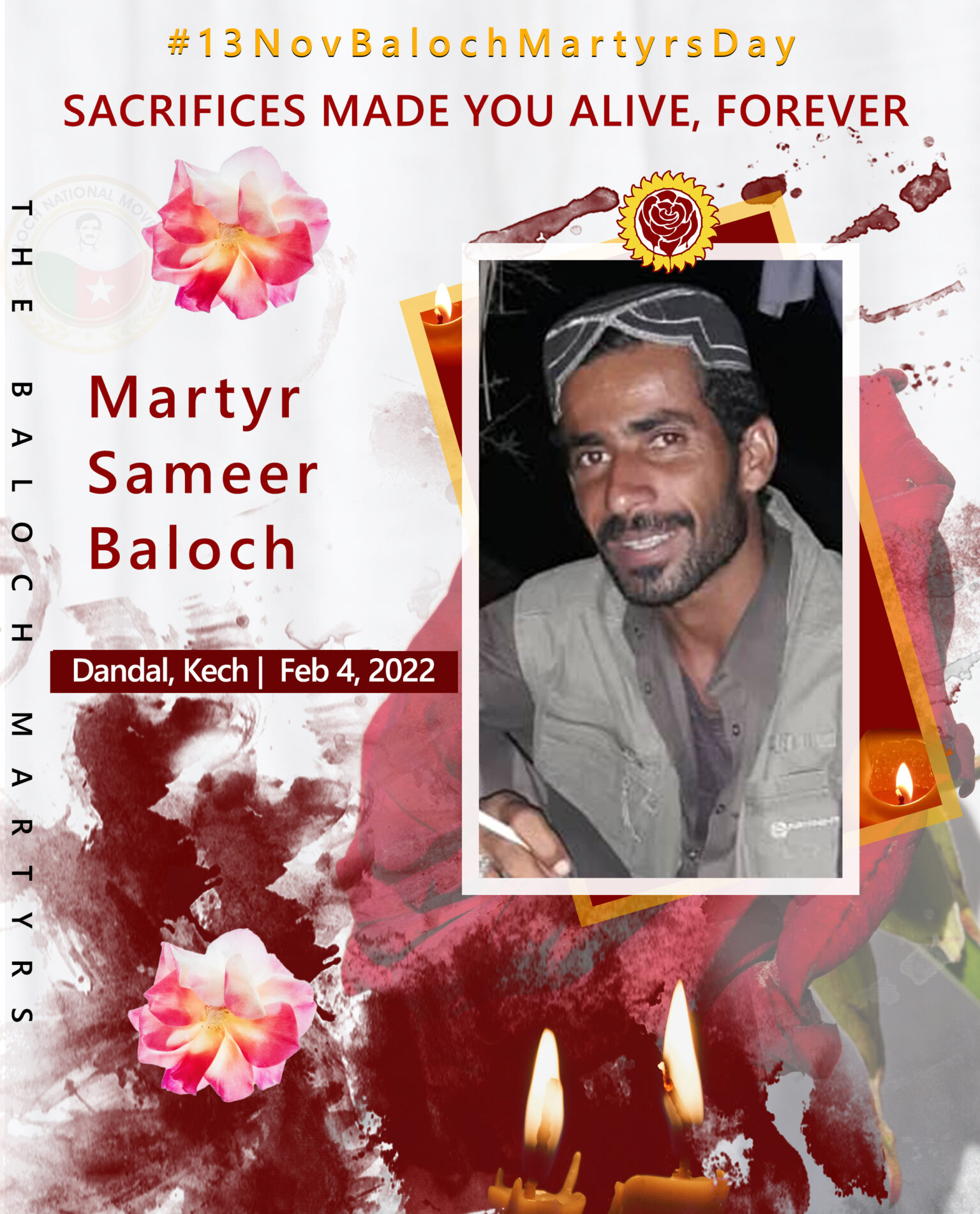 13 Nov Baloch Martyrs DayBLFFebruaryKechPostersMartyr Sameer Baloch Last updated: November 6, 2023 1:26 pm BNM Share 0 Min Read Martyr. Sameer Baloch SHARE Sacrifices Made You Alive, Forever.Resident of Dandal, KechDate of martyrdom: Feb 4, 2022 Martyr Nisar Saba Baloch Martyr Ali Jan Saqib Martyr Asif Yousif Baloch Martyr Balach Khan Baloch Martyr Fidayee Ibraham Baloch TAGGED:#13NovBalochMartyrsDay#Baloch#Balochistan#BalochMartyrs#Kech Share This Article Facebook Whatsapp Whatsapp Telegram Email Copy Link Print