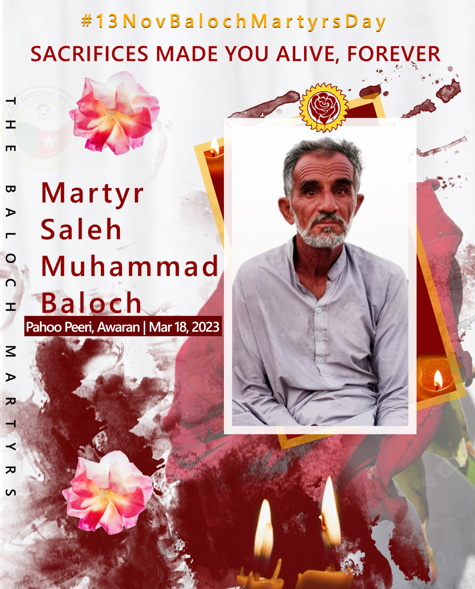 13 Nov Baloch Martyrs DayBLFMarchPostersMartyr Nako Saleh Baloch Last updated: November 7, 2023 10:32 am BNM Share 0 Min Read SHARE Sacrifices Made You Alive, Forever.Resident of Pahoo Peeri, AwaranDate of martyrdom: March 18, 2023 Martyr Perviz Baloch Martyr Kambar Baloch BalochMartyrs: Sacrifices made you alive, forever (Series 5) Martyr Fidayee Babar Majeed Baloch Martyr Sharbat Baloch TAGGED:#13NovBalochMartyrsDay#Baloch#Balochistan#BalochMartyrs Share This Article Facebook Whatsapp Whatsapp Telegram Email Copy Link Print