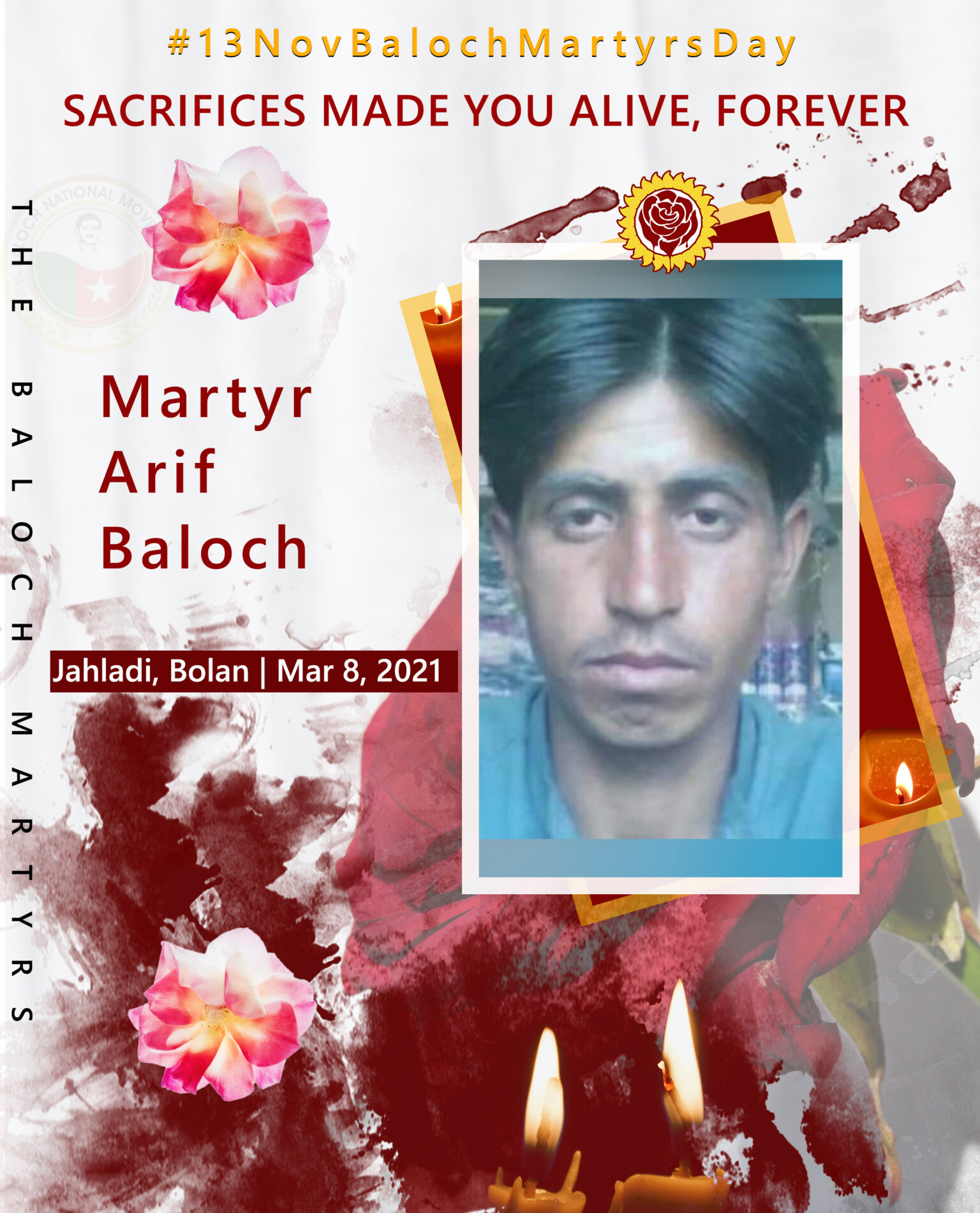 13 Nov Baloch Martyrs DayFake EncountersMarchPostersMartyr Arif Baloch Last updated: November 7, 2023 11:44 am BNM Share 0 Min Read Martyr Arif Baloch SHARE Sacrifices Made You Alive, Forever.Resident of Jahldi, BolanDate of martyrdom: March 8, 2021 Martyr Kambar Baloch Poster: Martyr Fidayee Naveed Baloch Martyr Abdul Sattar Baloch Martyr Fidayee Zameer Baloch Martyr Illahi Baksh Baloch Share This Article Facebook Whatsapp Whatsapp Telegram Email Copy Link Print