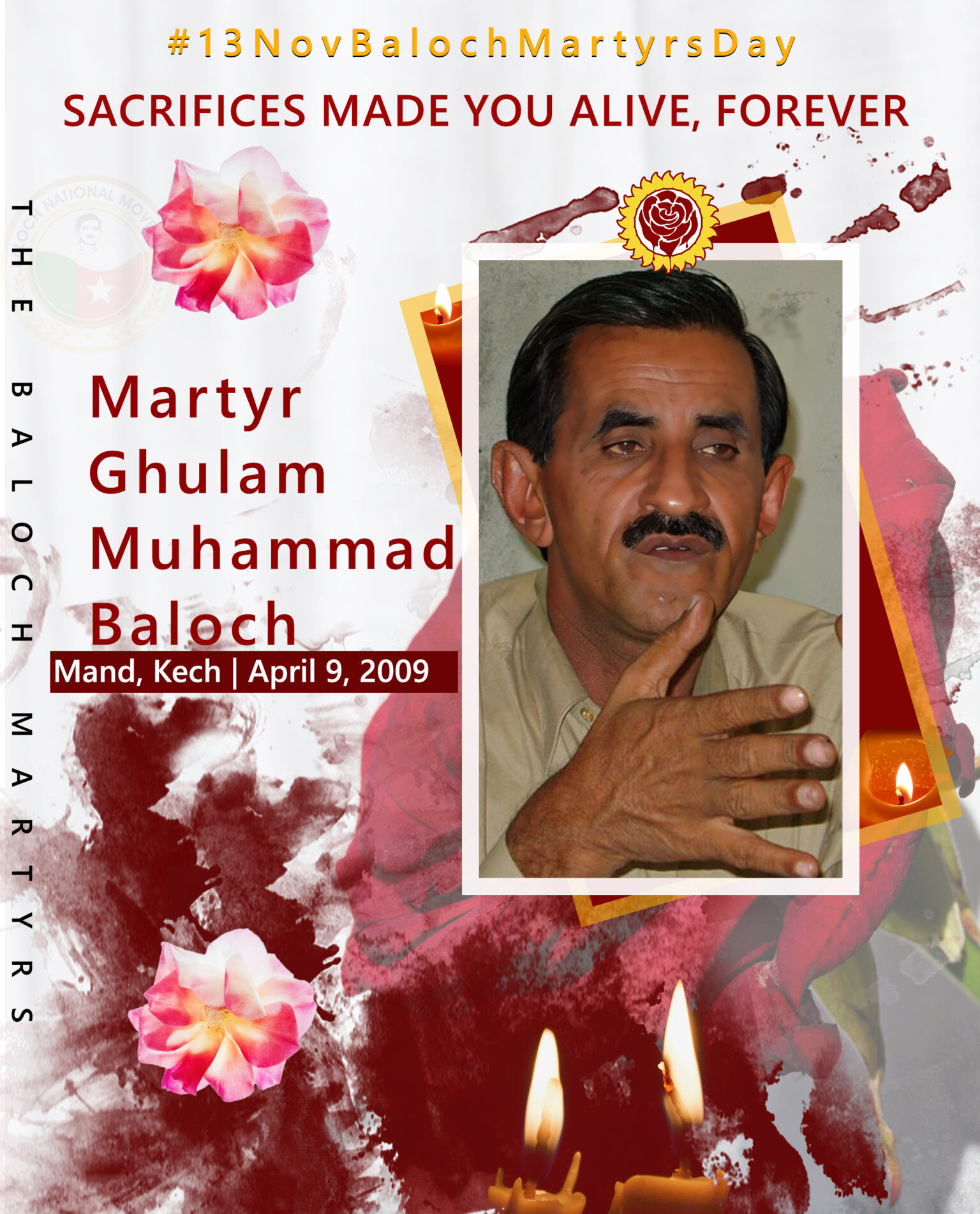 13 Nov Baloch Martyrs DayAprilBNMKechPostersThe LegendsMartyr Ghulam Muhammad Baloch Last updated: November 8, 2023 8:55 am BNM Share 0 Min Read Martyr Ghulam Muhammad Baloch SHARE Sacrifices Made You Alive, Forever.Resident of Mand, KechDate of Martyrdom: April 9, 2009 Martyr Fidayee Naveed Baloch Brief Introduction: Javed Gohram Martyr Balach Baloch Martyr Meeshdar Baloch Martyr Hayat Mirza Baloch Share This Article Facebook Whatsapp Whatsapp Telegram Email Copy Link Print Leave a Comment Leave a Comment Leave a ReplyYour email address will not be published. Required fields are marked *Comment *Name Email Website Δ