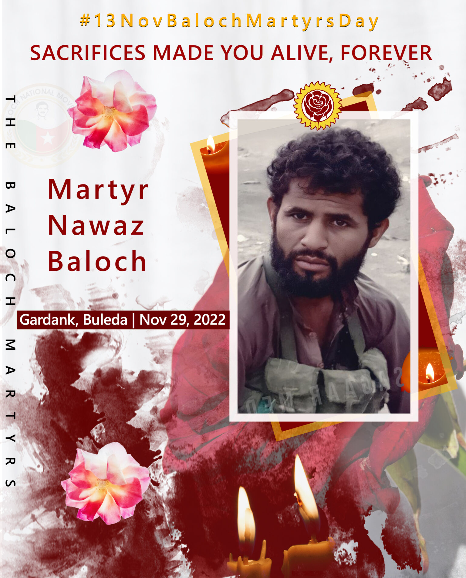 Martyr Nawaz Baloch Alias Fazal Baloch, son Sabzal Baloch was a resident of Gardank, Buleda area of Kech, Balochistan. He affiliated with Baloch Liberation Army, BLA since 2019. He embraced martyrdom along with eight comrades, Jalil Sher Baloch, Samad Baloch, Dad Shah, Samad Baloch, Shoaib Baloch, Rahmdil Baloch, Haris Baloch and Kambar Baloch  in a drone attack of Pakistan Army  on Nov 29, 2022 in Jath, Kolwa area of Kech, Balochistan.   Â