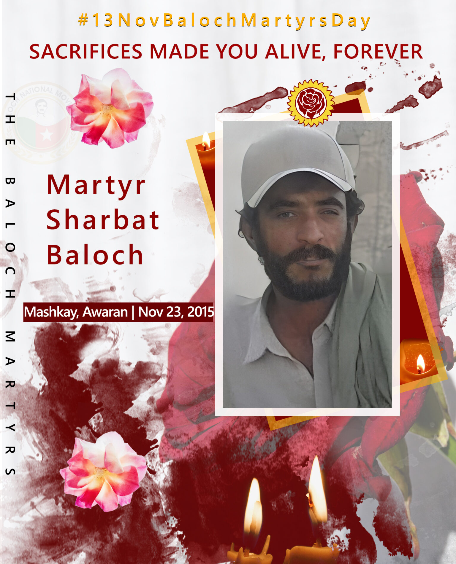 13 Nov Baloch Martyrs DayAwaranNovemberPostersMartyr Sharbat Baloch Last updated: November 12, 2023 9:22 am BNM Share 0 Min Read Martyr Sharbat Baloch SHARE Sacrifices Made You Alive, Forever.Resident of Mashkay, AwaranDate of Martyrdom: Nov 23, 2015 Martyr Ghulam Muhammad Baloch Martyr Jaffar Baloch Martyr Shah Jan Baloch Martyr Razzaq Baloch November 13 Martyrs’ Day: Honoring the Legacy of Sacrifice by Dr. Naseem Baloch TAGGED:#13NovBalochMartyrsDay#Awaran#Baloch#Balochistan#BalochMartyrs Share This Article Facebook Whatsapp Whatsapp Telegram Email Copy Link Print Leave a Comment Leave a Comment Leave a ReplyYour email address will not be published. Required fields are marked *Comment *Name Email Website Δ