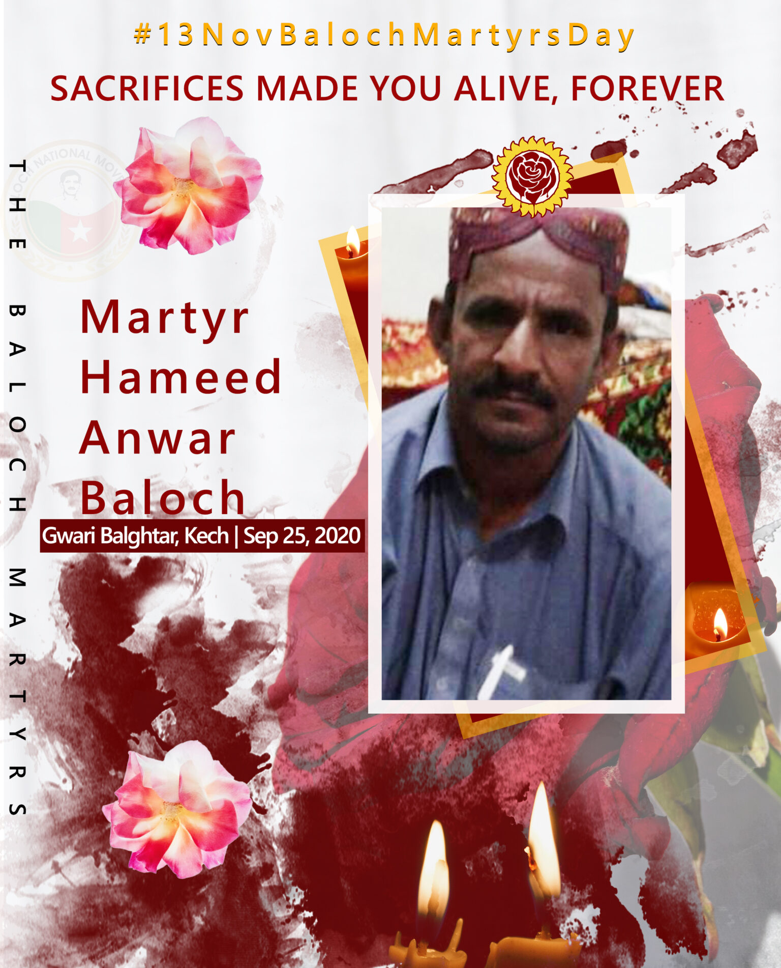 13 Nov Baloch Martyrs DayPostersSeptemberMartyr Hameed Anwar Baloch Last updated: November 12, 2023 9:51 am BNM Share 0 Min Read Martyr Hameed Anwar Baloch SHARE Sacrifices Made You Alive, Forever.Resident of Gwari Balgtar, area of KechDate of Martyrdom: Sep 25, 2020 Martyr Asif Yousif Baloch Martyr Abbas Baloch Martyr Shahbaz Baloch Martyr Wahid Baloch Martyr Fidayee Murad Ajao Baloch TAGGED:#13NovBalochMartyrsDay#Baloch#Balochistan#BalochMartyrs Share This Article Facebook Whatsapp Whatsapp Telegram Email Copy Link Print Leave a Comment Leave a Comment Leave a ReplyYour email address will not be published. Required fields are marked *Comment *Name Email Website Δ