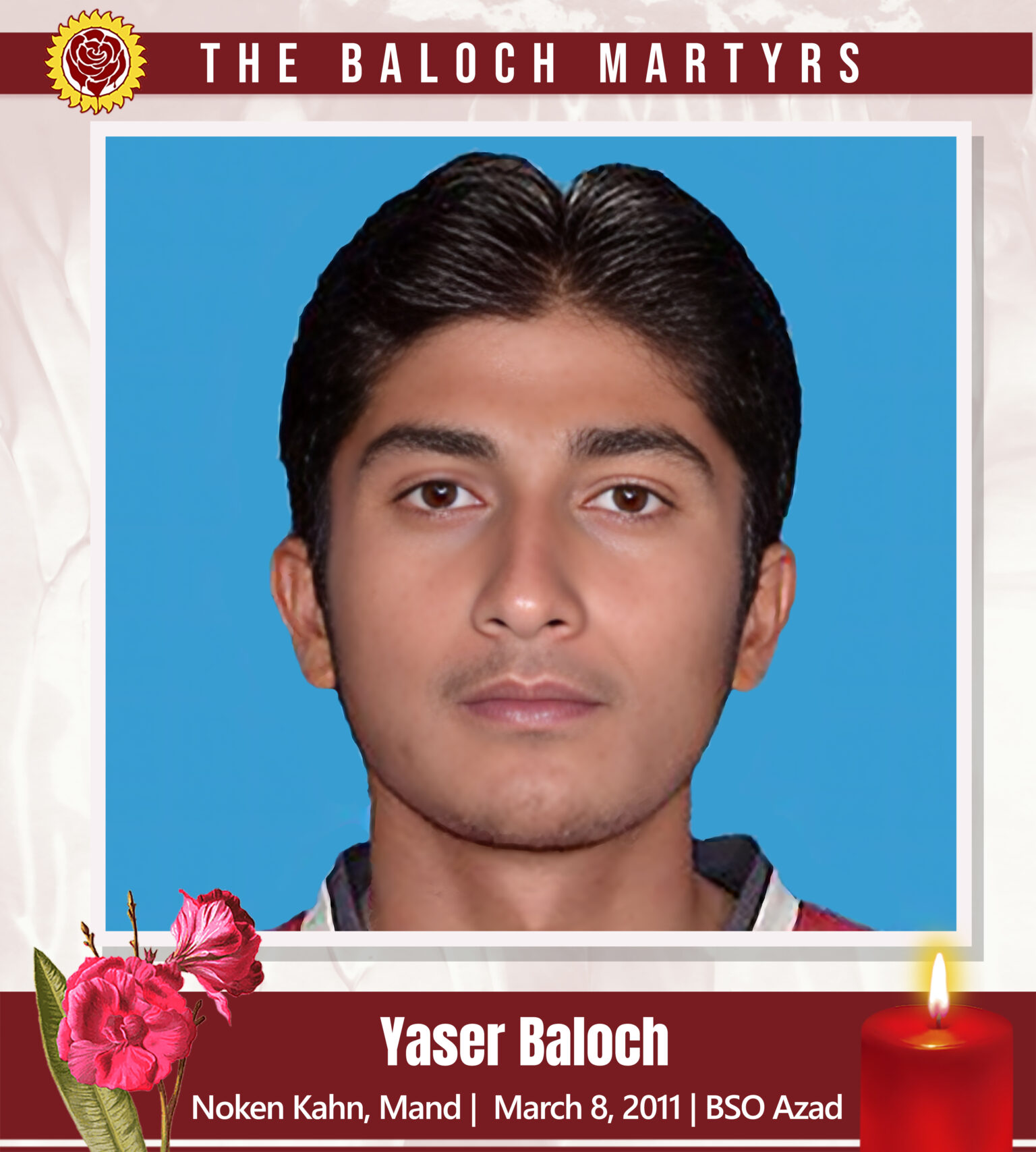 Yaser Baloch, son of Haji Nasir Ababagr, a member of BSO Azad and a first-year student at Degree College Gwadar, was abducted by a Pakistani secret agency on October 14, 2010, from Shinikanidar near Gwadar. His bullet-riddled body was found on the Turbat-Pasni road near Murgaap Kech on March 8, 2011.