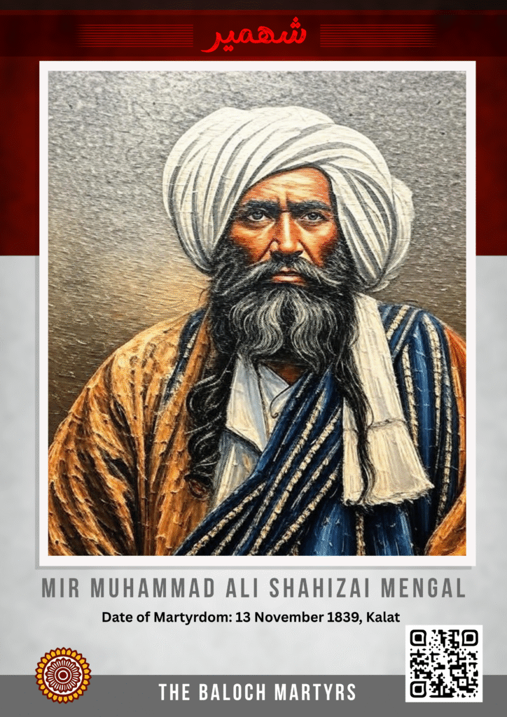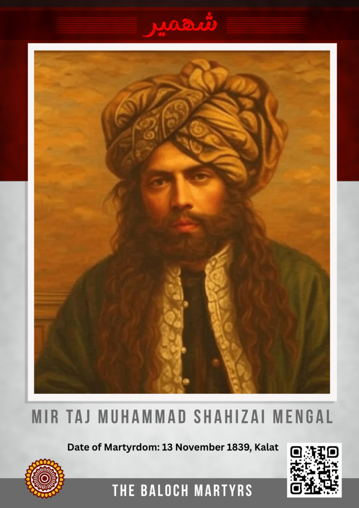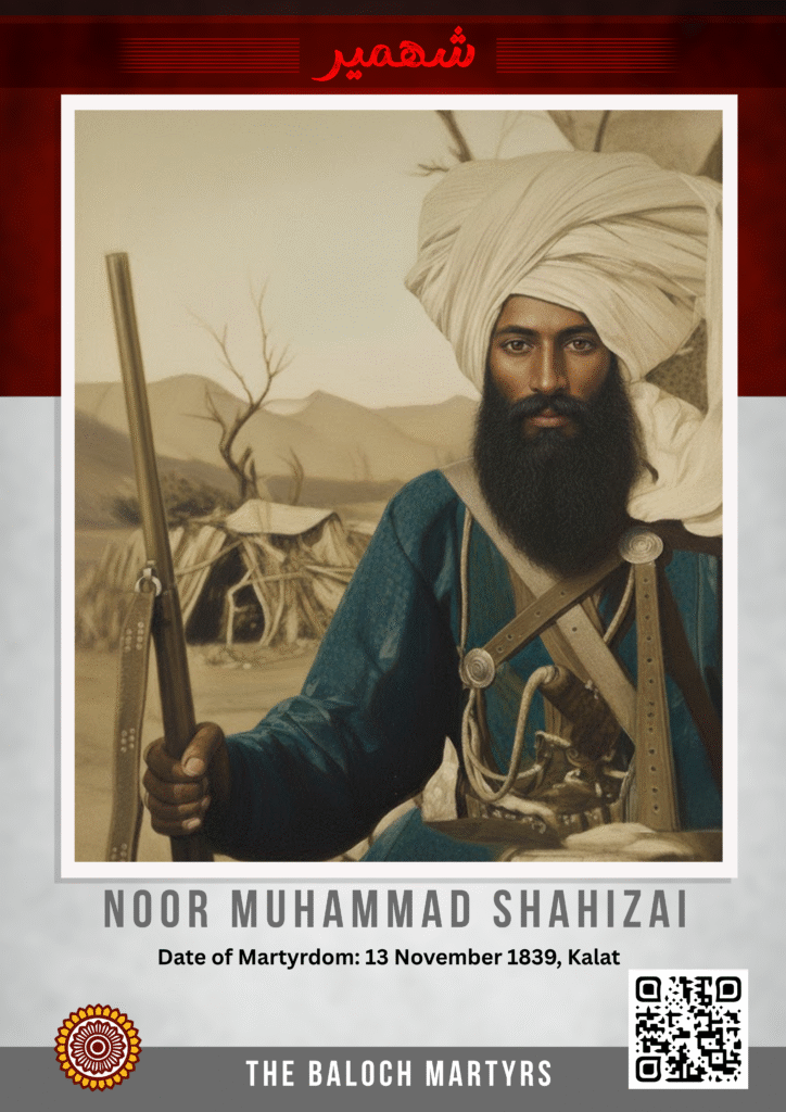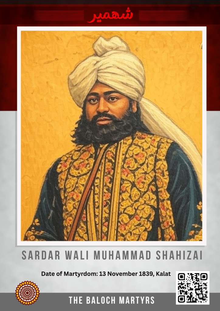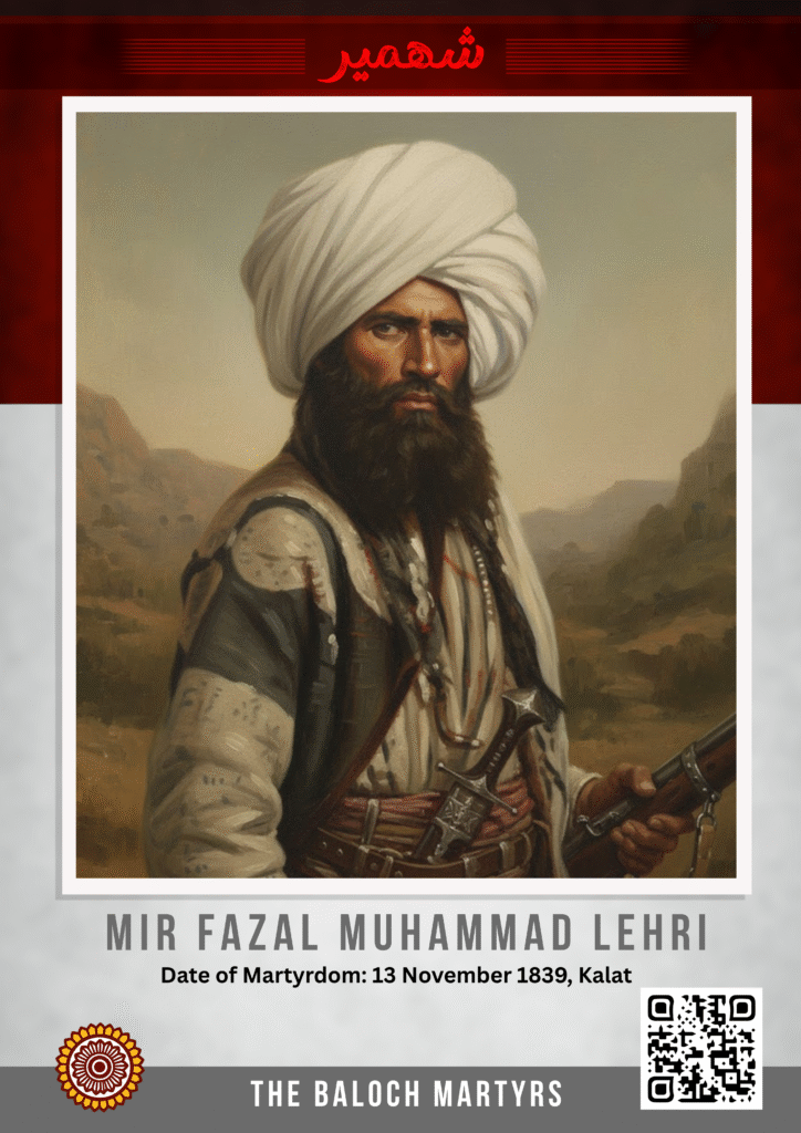On 13 November 1839, in the fierce defense of Baloch soil against the British assault, Lal Shaheed Khan Mehrab and four hundred valiant Baloch warriors attained martyrdom.