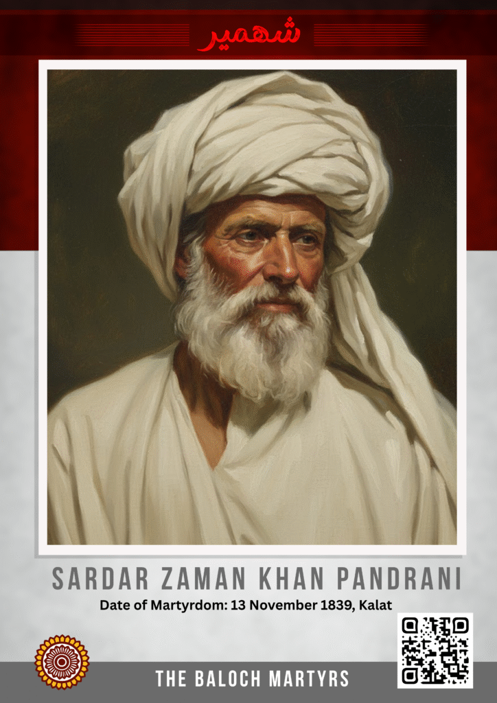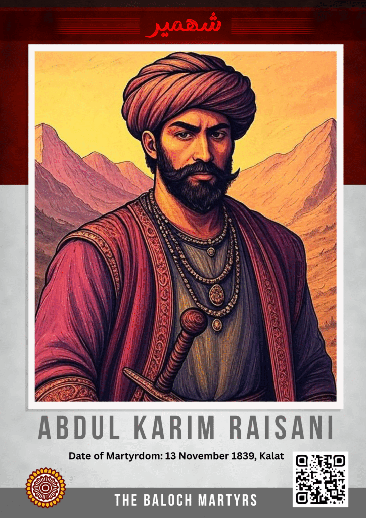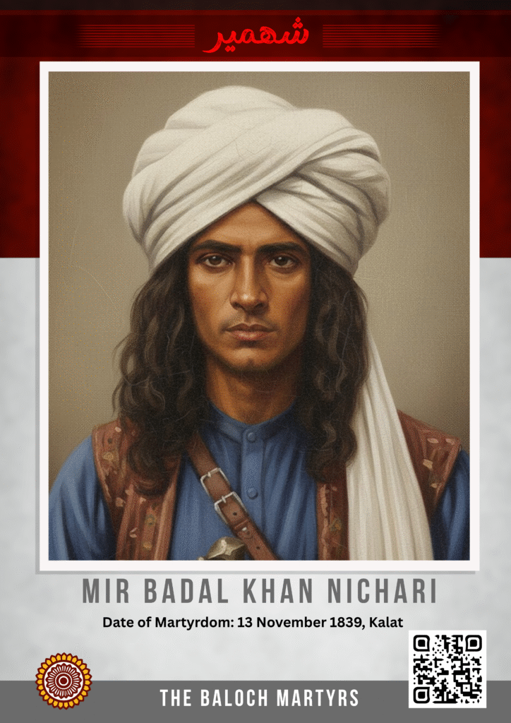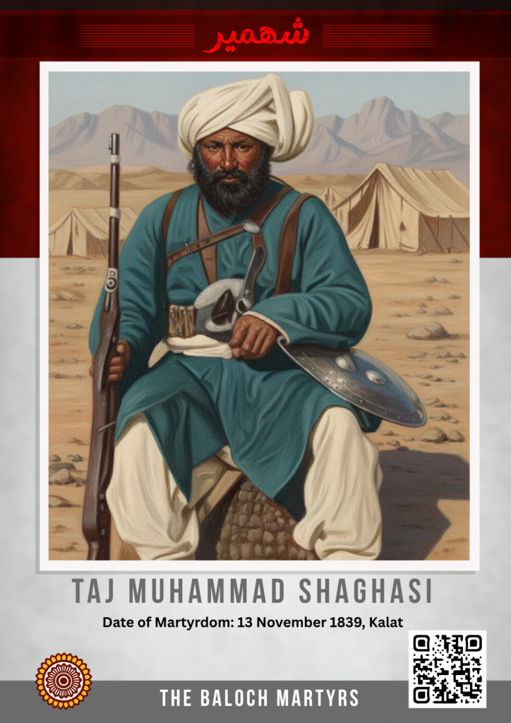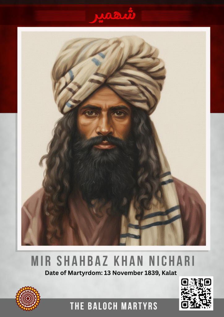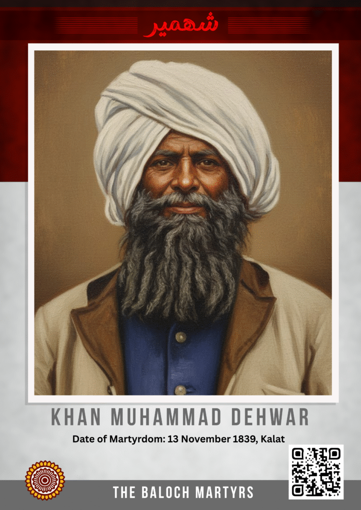 On 13 November 1839, in the fierce defense of Baloch soil against the British assault, Lal Shaheed Khan Mehrab and four hundred valiant Baloch warriors attained martyrdom.