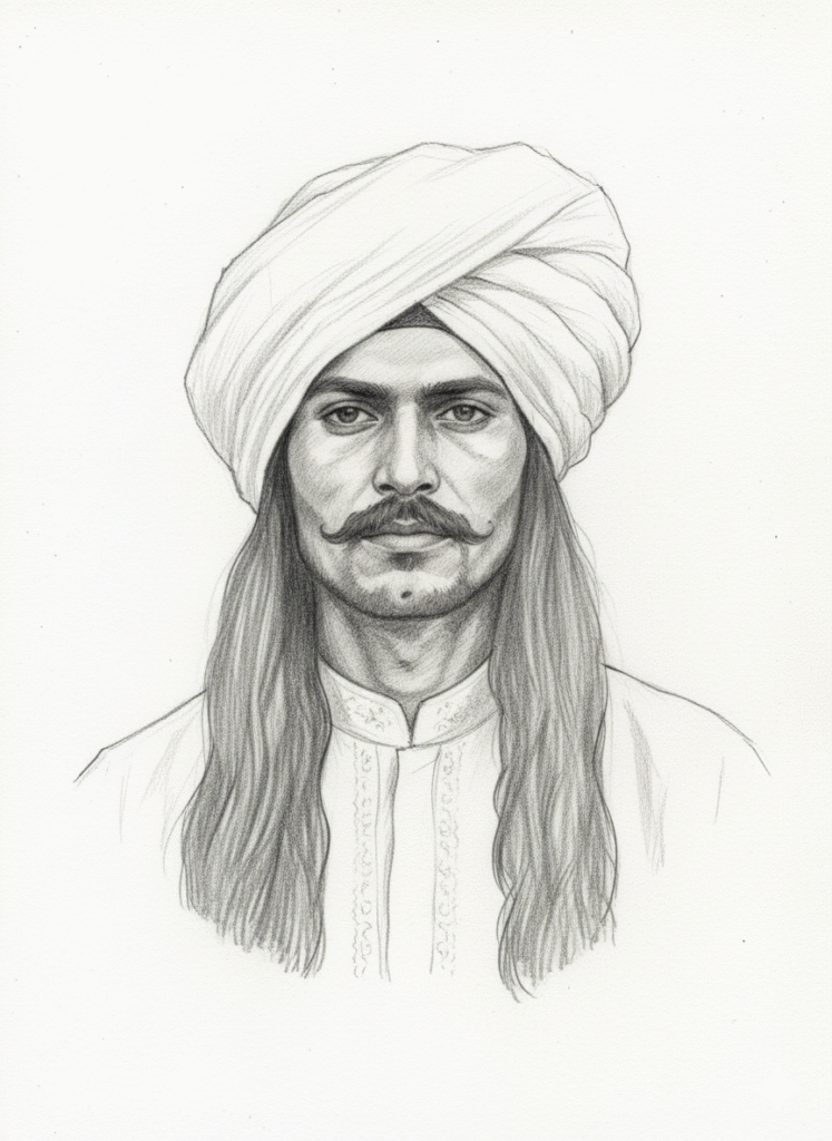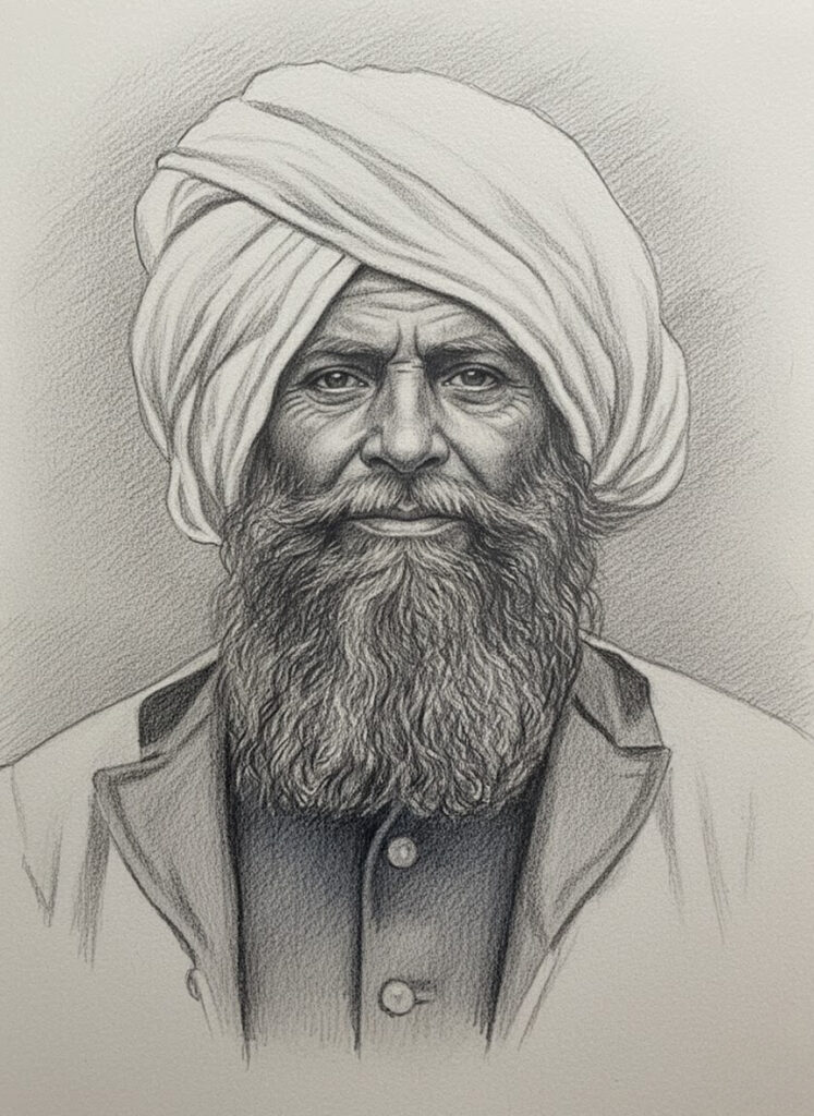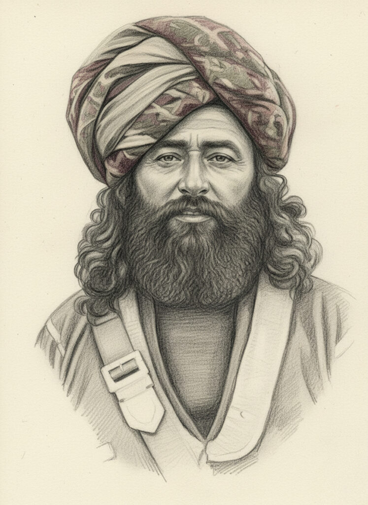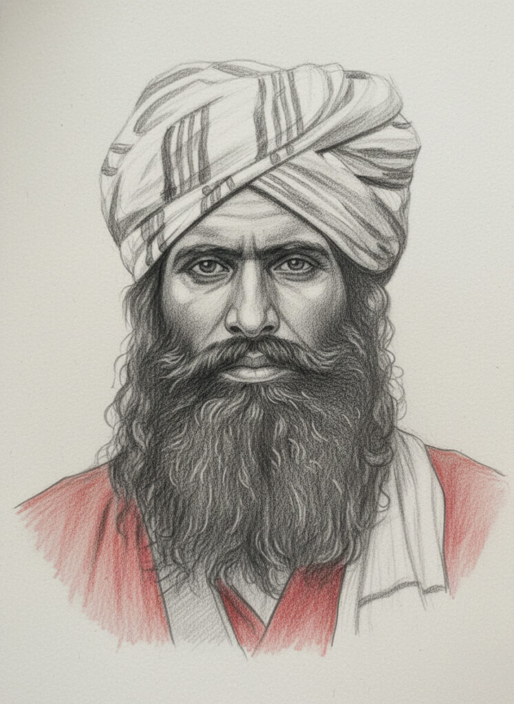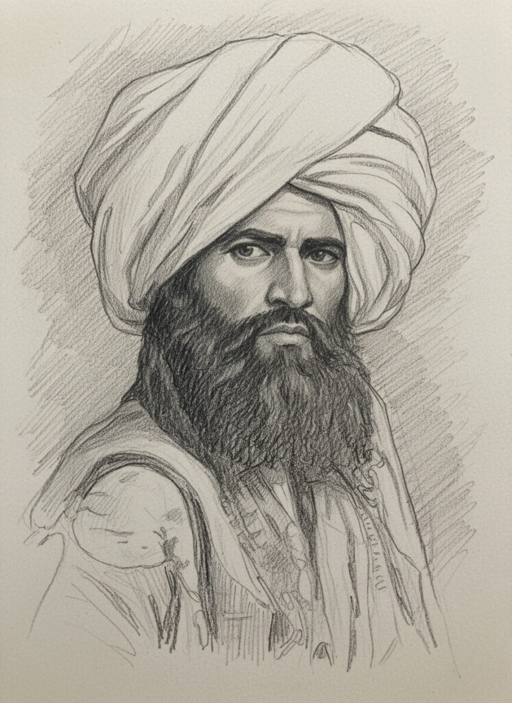 The sketches of the known martyrs of Kalat, dated November 13, 1839, have been created to help more vividly preserve their historical significance in public memory. These conceptual portraits are inspired by the visual references available from the period close to their time. Special attention has been given to ensure that their attire and appearance reflect the fashions and features of that era.