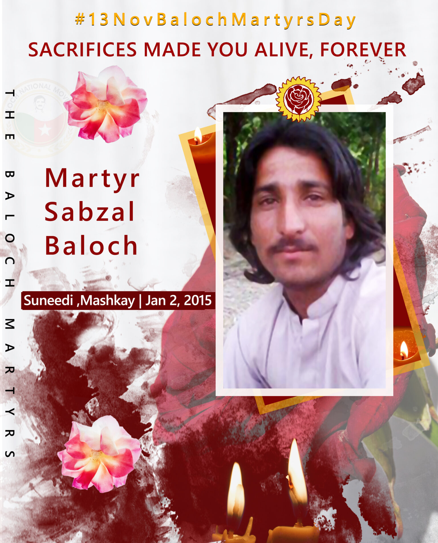Sacrifices Made You alive, forever Resident of Suneedi, Mashkay area of Awaran Date of martyrdom: Jan 2, 2015