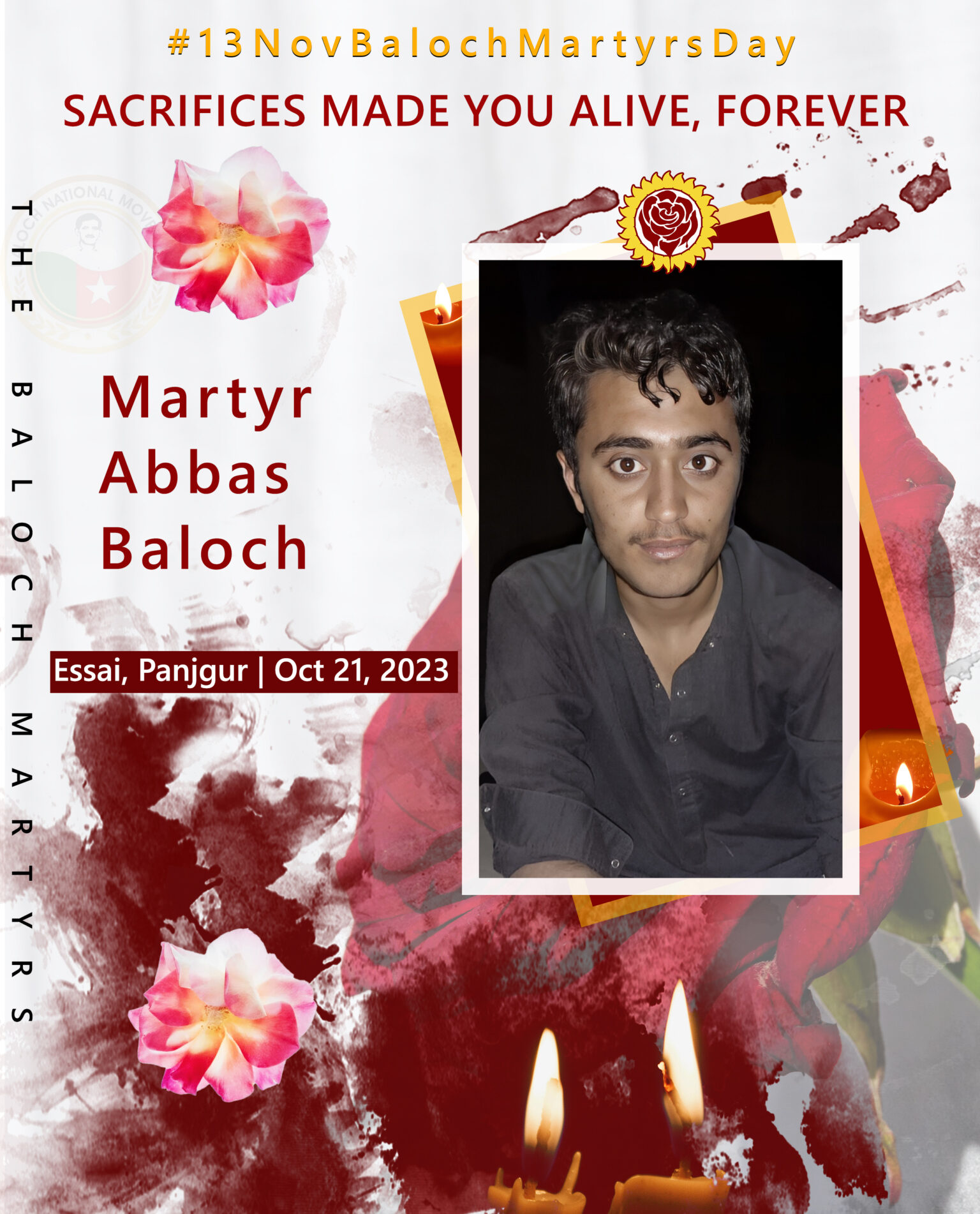 Sacrifices made you alive forever Martyr Abbas Baloch alias Majeed Baloch was born in the house of Abdul Qadeer and Rozeena Baloch in Essai Panjgur, Balochistan. He was became part the Baloch national Liberation movement platform of the Balochistan Liberation Front (BLF)…